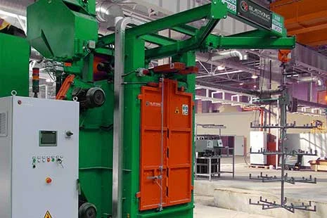 Continuous hanger shot blasting machine automate production sequences and improve the work environment, resulting in an efficient and cost effective blast cleaning process. These benefits, together with the machines’ minimum space requirements, shorter transport distances and no intermediate stocking requirements can result in substantial reductions in manufacturing costs.