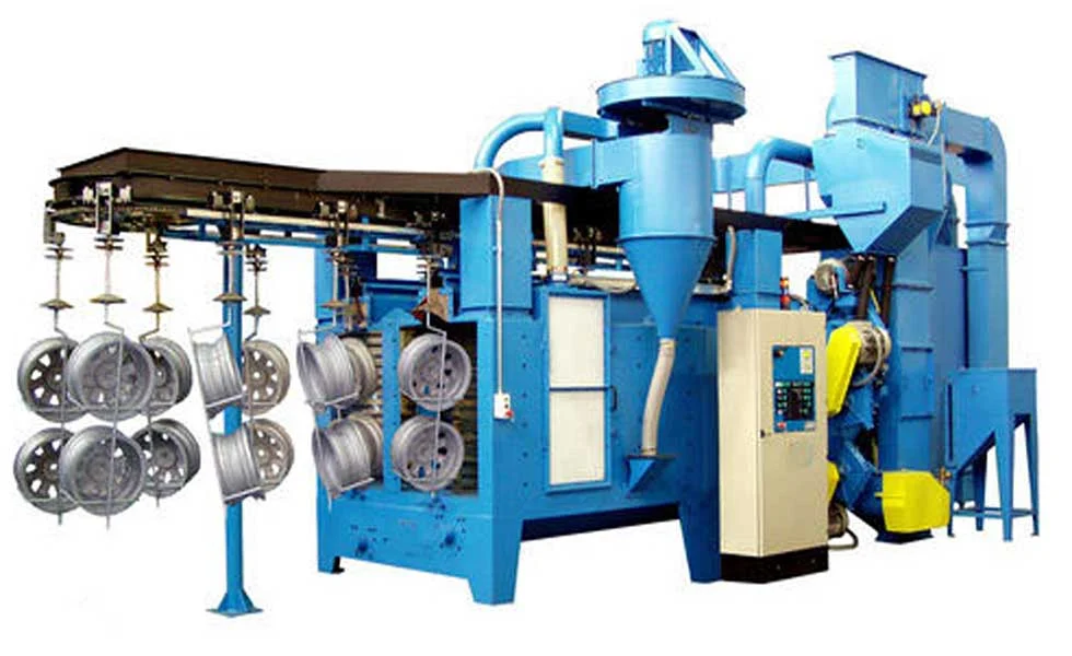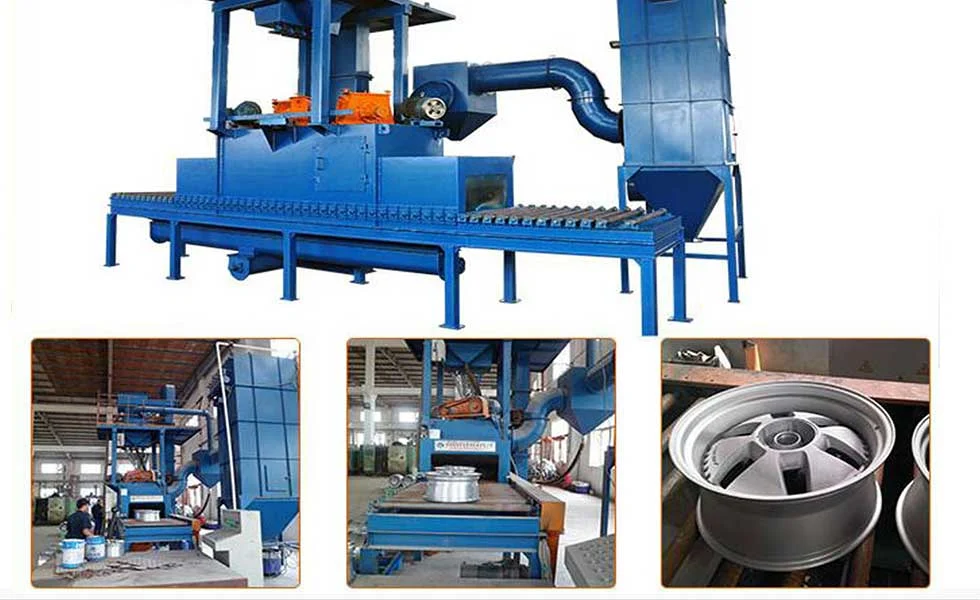 The wheel rims shot blasting machine are specially designed for blast processing wheel hubs, alloy wheels, wheel rims, etc.