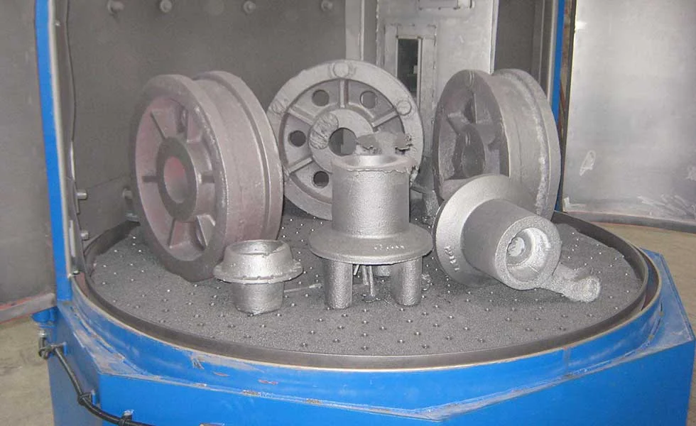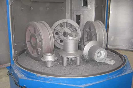 Further more, the shotblasting process is for removing the layers of casting earth following the casting process. In short, the mass of earth that contains the castings is crushed and separated from the pieces by the impact of the shot and even the slightest slag on the pieces is removed by abrasion.