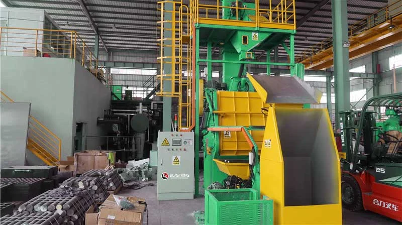 This customer was used to be a shot blasting equipment manufacturer by themselves since 2001, but along with the fabrication cost, land cost and labor cost are higher and higher year by year, they had to make a tough decision to stop doing the manufacture by themselves. After a cautious investigation, they decided to buy a unit of tumble shot blasting machine with automatic loading and unloading system as a trial order from BlastKing.